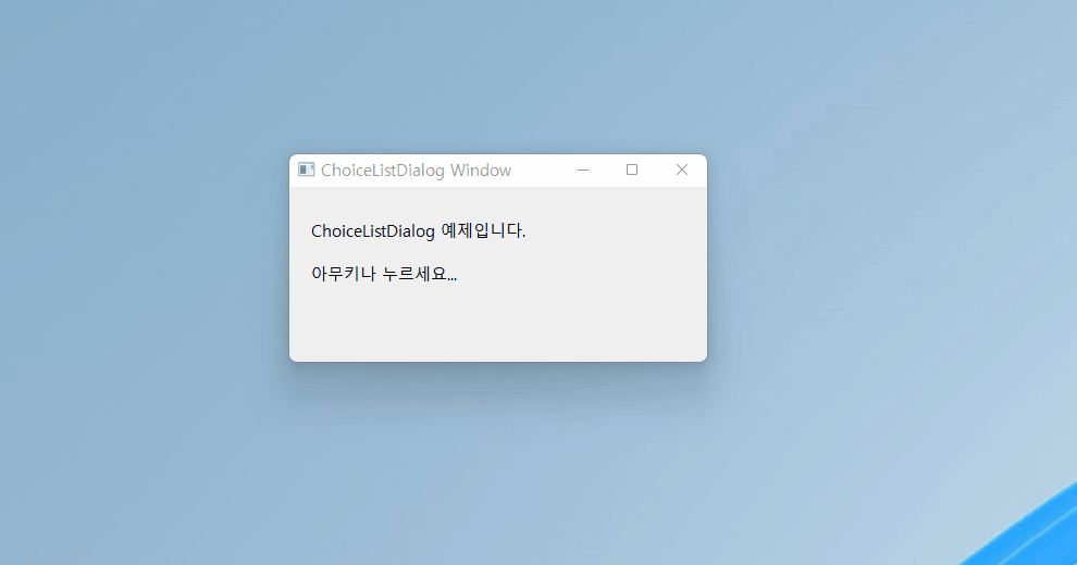 "SingleChoiceDialog 예제입니다.\n\n아무키나 누르세요...",