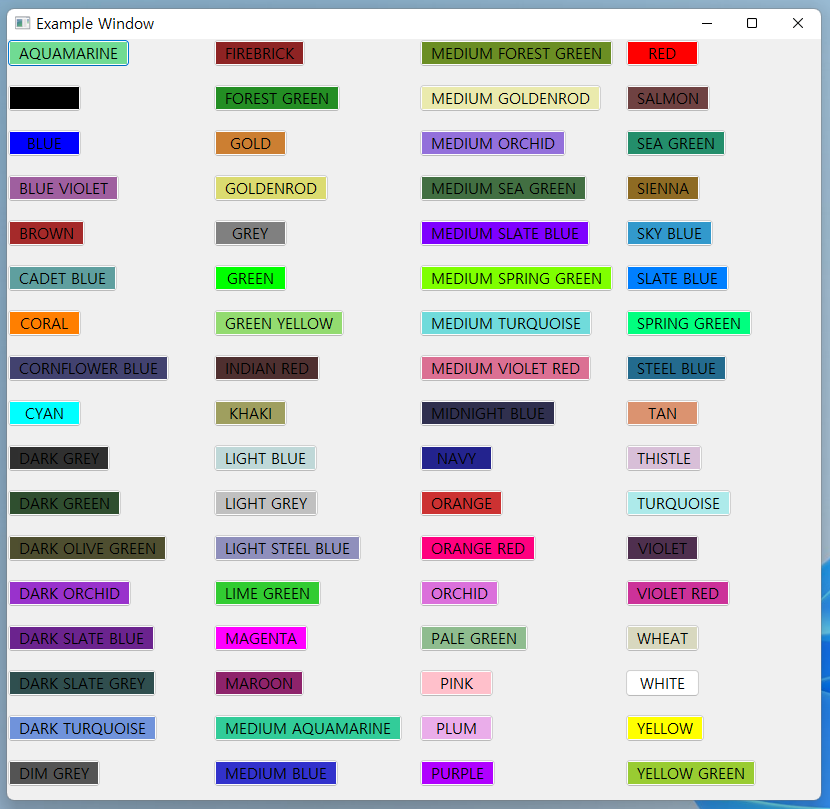 # wxPython에서 기본 제공하는 색상 DataBase (총 17*4)