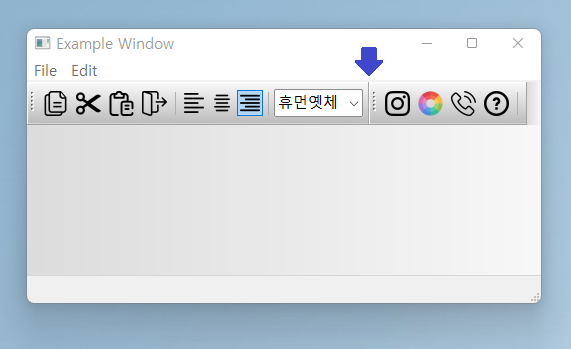radio_c = tb1.AddRadioTool(n_id, "오른쪽 정렬", bmp, wx.NullBitmap, short_help_string="오른쪽 정렬")
