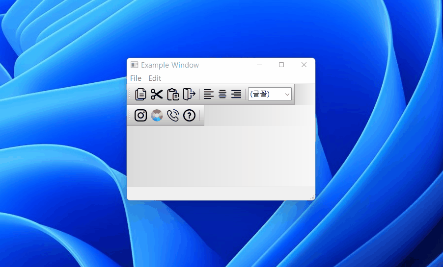 개요 툴바(wx.ToolBar)는 메뉴바(wx.MenuBar) 아래에 위치한 여러 개의 버튼으로 이루어진 wxPython 위젯이다. wx.ToolBar 툴바(wx.ToolBar)는 여러 개의 툴베이스(wx.ToolBarToolBase)들로 이루어진다. 툴베이스란 툴