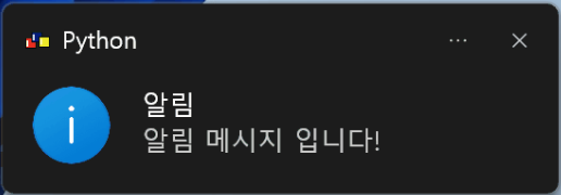 noti = wx.adv.NotificationMessage("알림", message="알림 메시지 입니다!",
