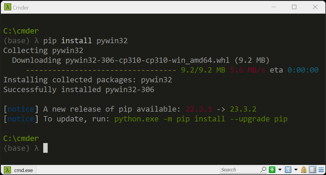 설치는 간단하다. 아래와 같이 커맨드 창을 열어 pip install pywin32 를 쳐 주면 끝이다. (물론 엑셀은 이미 설치 되어 있겠지ㅣ....? )