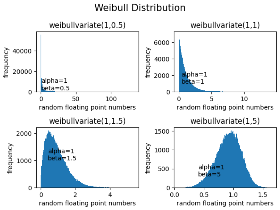 # 웨이블 분포 (Weibull Distribution) 난수 생성