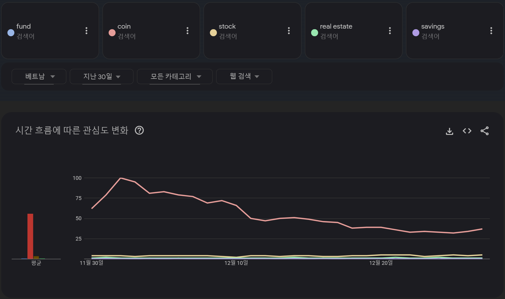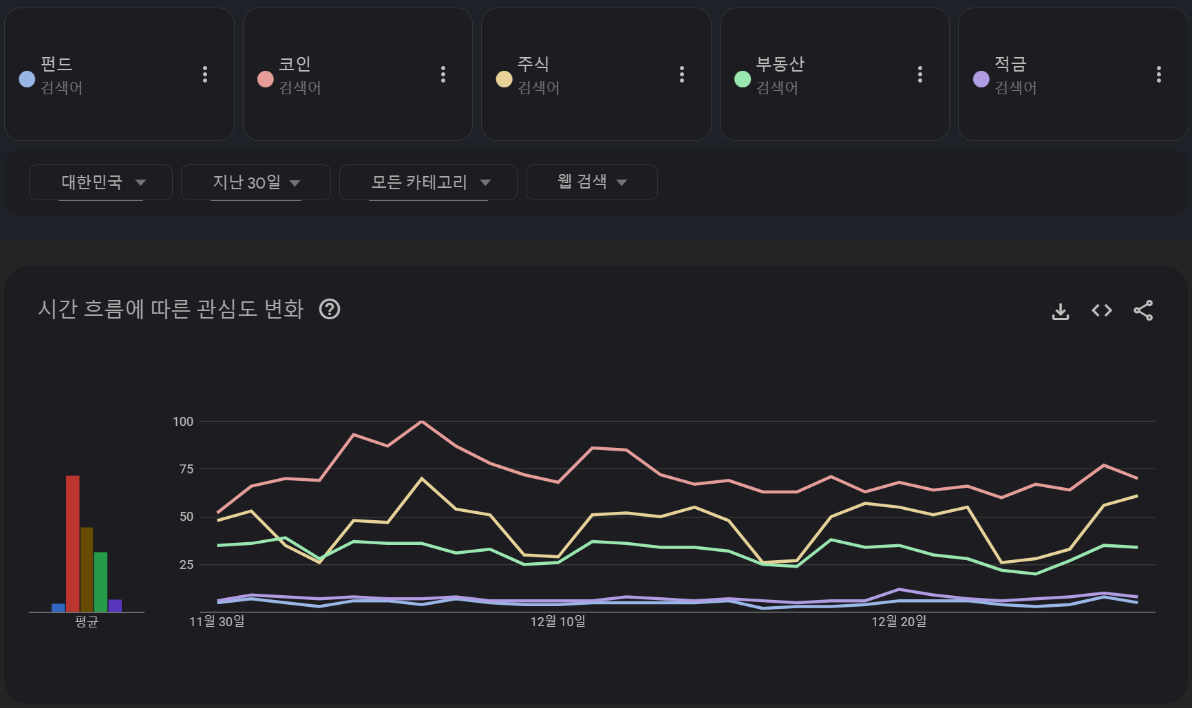 대한민국은 확실히 코인-주식-부동산 순서로 관심도가 높은 것 같습니다.