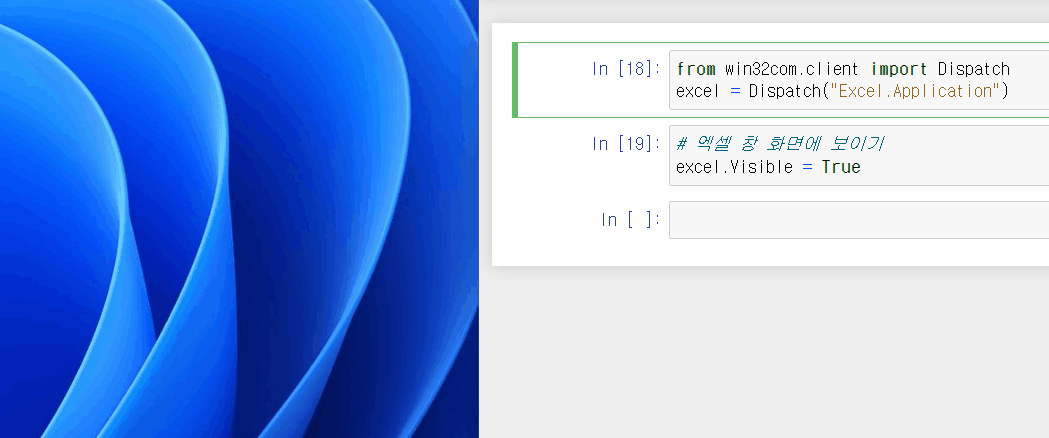 # 엑셀 창 화면에 보이기